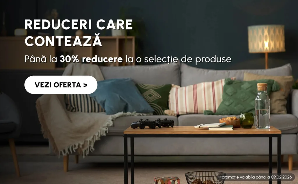 Pe langa transportul gratuit, poti beneficia si de reduceri fixe, de exemplu 50 sau 100 lei, aplicabile la comenzi online care indeplinesc conditiile campaniei. Aceste vouchere sunt de obicei cumulative cu reducerile deja existente pe site.